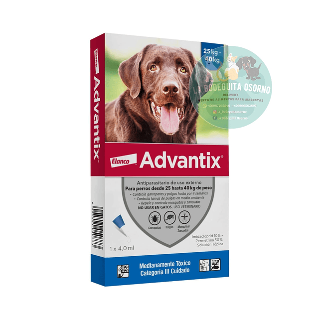 Advantix de Bayer es un antiparasitario externo para perros presentado en pipeta. Formulado a base de imidacloprid y permetrina, es un efectivo tratamiento pulguicida y garrapaticida que protege durante un mes de la infestación por ácaros e insectos. ¿Cada cuánto tiempo debo aplicar Advantix en mi perro? Debe aplicarse una vez al mes para prevenir pulgas y garrapatas, y cada tres semanas para prevenir la picadura del flebotomos, y por tanto prevenir la Leishmaniosis.