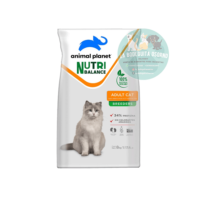 Nutrición completa para gatos adultos. Su formulación entrega proteínas de alto nivel biológico, lo que promueve una óptima salud digestiva y un aporte de aminoácidos para la formación y mantención de la masa muscular.